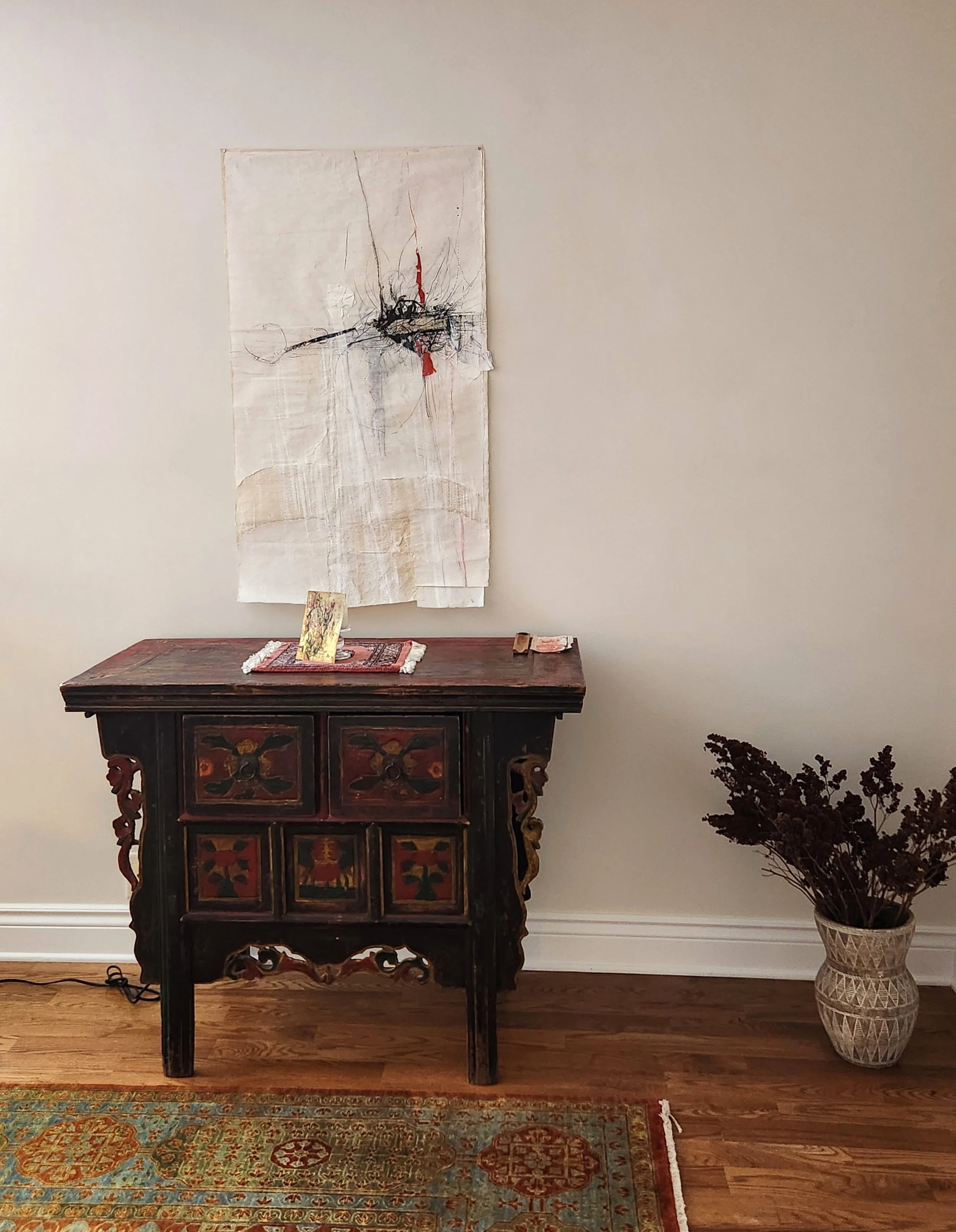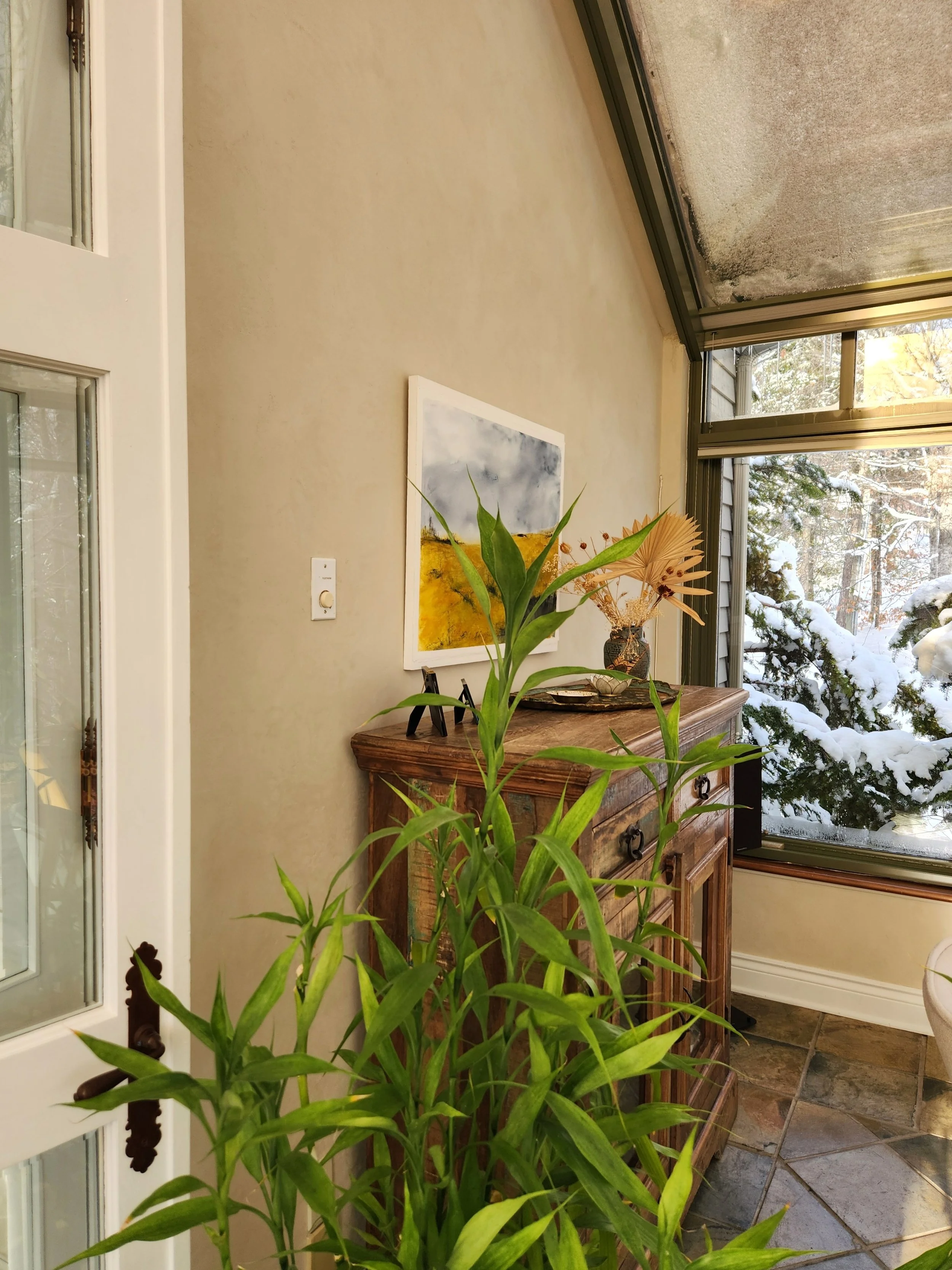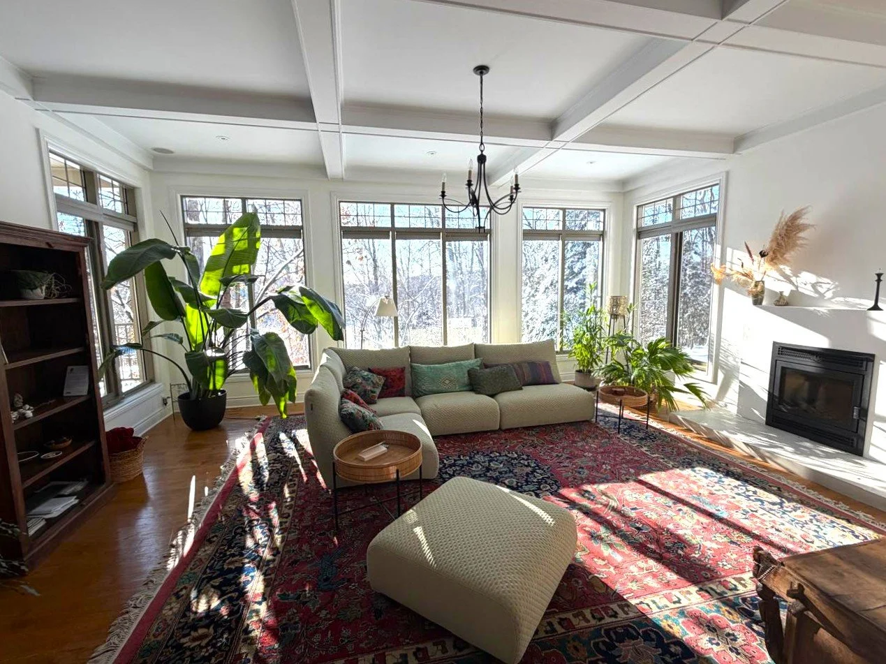 This residence becomes a perfect and luminous retreat where the softness of textures and hues creates a soothing atmosphere. The living room exudes serenity through a natural white lime paint that envelops the walls and fireplace mantel in a delicate, refined finish. The bedroom, treated with a limewash in shade 827 B-C, offers a velvety, warm texture, while the sunroom, coated with a fine 0.5 mm lime plaster in the same soft hue, extends this tactile and visual harmony. Noble materials enhance the architecture and invite contemplation.